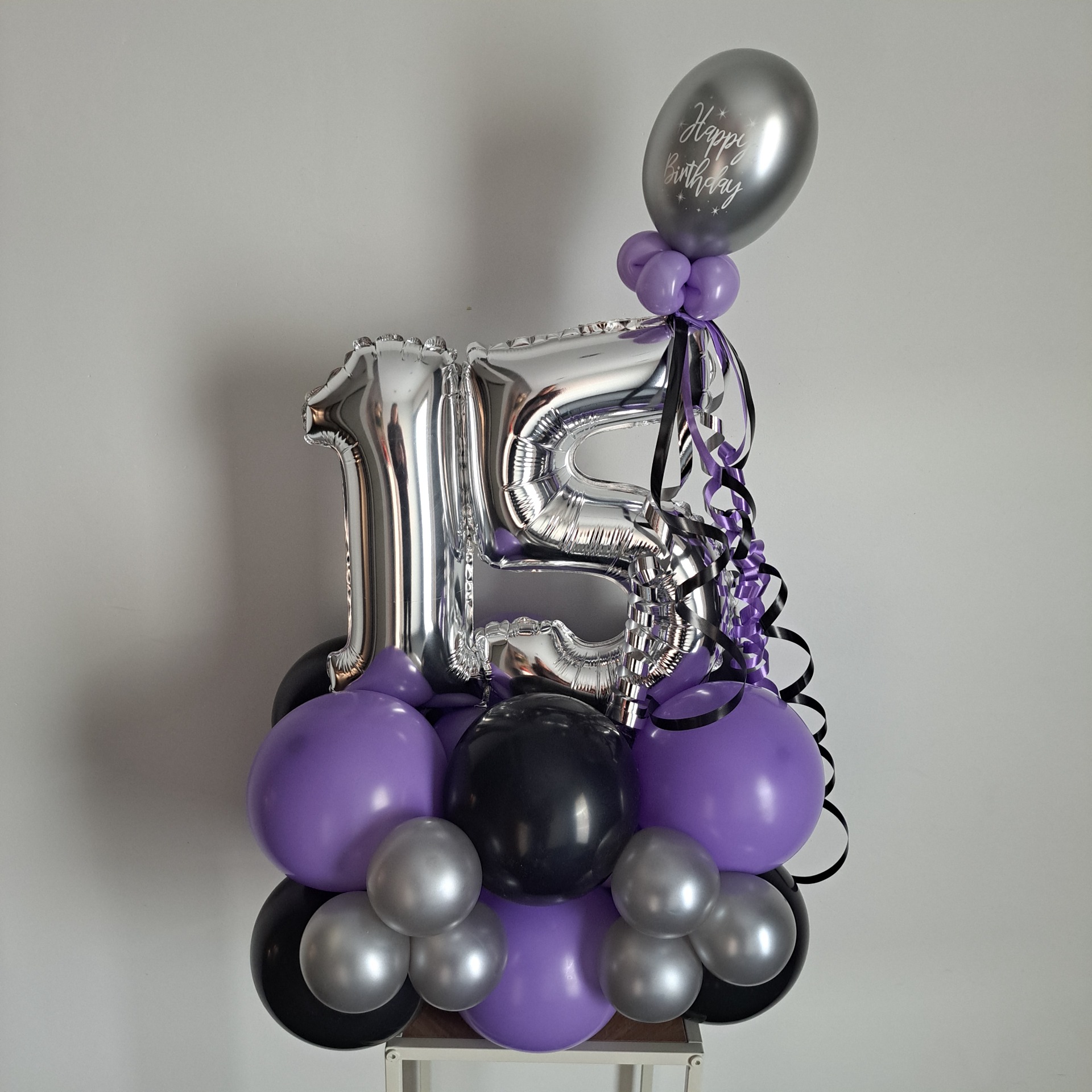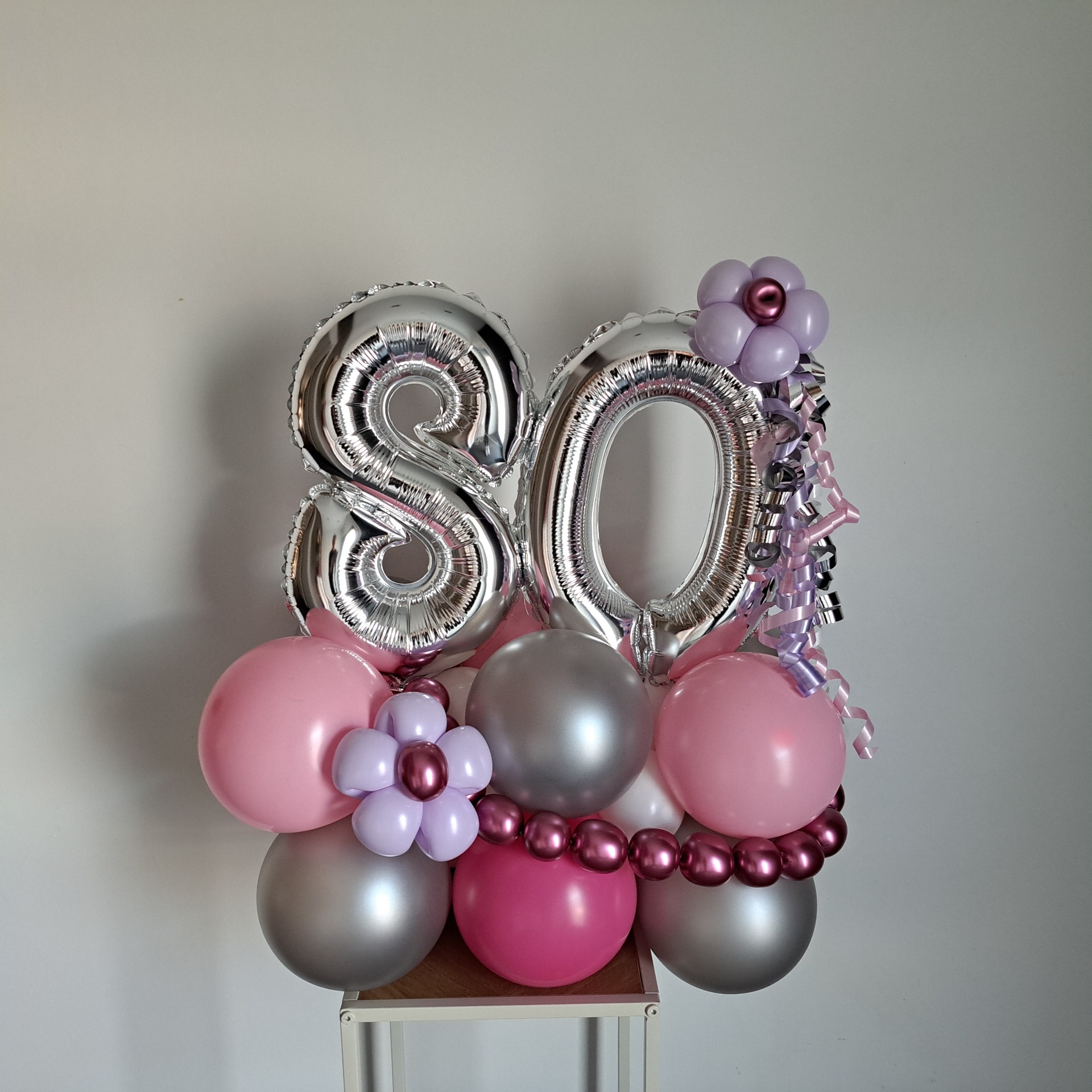 2. Mini cijfer boeketje: De cijfers zijn 35 cm. De voet bestaat uit 3 laagjes ballonnen, waardoor hij perfect geschikt is om op tafel te zetten. Kleuren volledig zelf te kiezen.